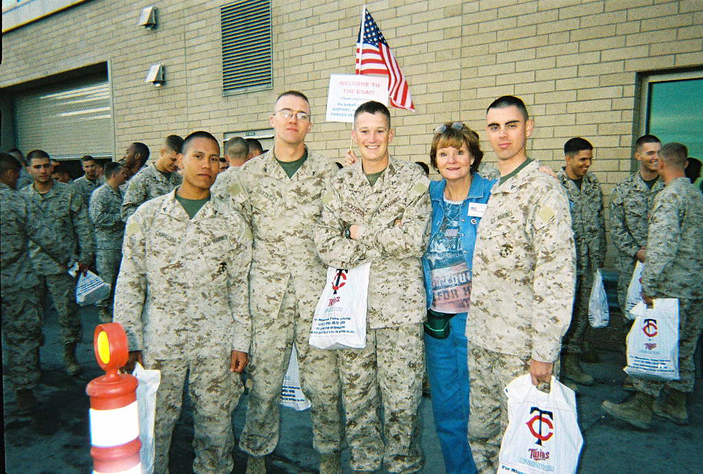 I just wanted to tell you and your volunteers thank you from the bottom of my heart for taking such wonderful care of our Marines during their extremely long layover. My brother was there and said he was treated wonderfully and it made him so happy to have people treat him so nice before he went back to Iraq. It truly made his day(s). I wish there were more people who did these kinds of things. I know it made me feel 100 percent better knowing he wasnt sleeping on a cold hard floor with people being rude to him on his last night in the US. So once again thank you thank you thank you for being Gods special angels for these troops. You dont realize how many lives you touch besides the soldiers in the airport. The families thank you as well. God bless you all. Valerie Boswell